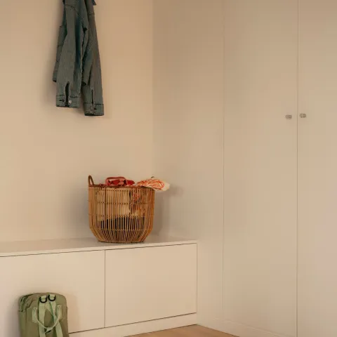 Makuuhuoneen pehmeä, hillitty ja harmoninen tunnelma syntyy klassisen siniharmaan K498 Valkaman ja TIKH Tikkurilan Harmaan yhdistelmästä. Sinisellä värillä on luonnostaan rauhoittava vaikutus ja siksi se sopii erityisesti makuuhuoneeseen.