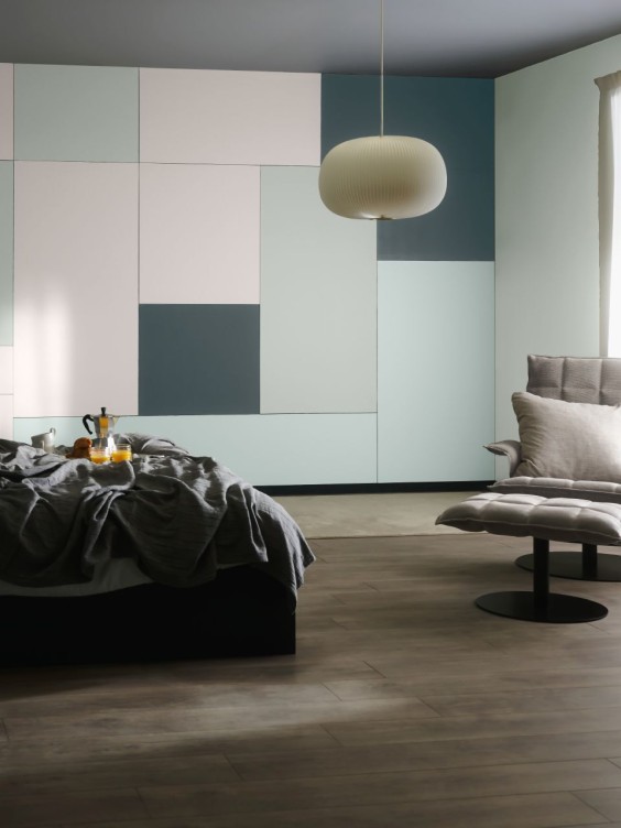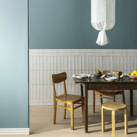 Luo tämä levollinen tunnelma yhdistelemällä vaaleita ja tummia sävyjä: heleä F483 Illusio ja usvainen vihreä X447 Merisavu täydentävät intensiivistä V493 Linnunrata -sävyn harmaata.