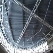 Tikkurilan kirkon rimakaton palosuojakäsittely korostaa puun kauneutta