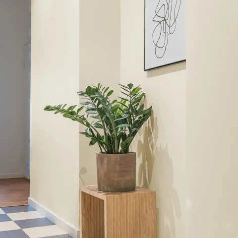 Eteinen toivottaa tervetulleeksi lämpimän vaalealla F462 Halo -sävyllä. Halo on kuin kotisi oma valoisa filtteri – se rauhoittaa mutta ei koskaan tylsistytä. Rauhoittava Halo yhdessä lattian ruutukuvion kanssa vastaanottaa tulijan persoonallisen lämpimästi tähän upeaan kotiin.