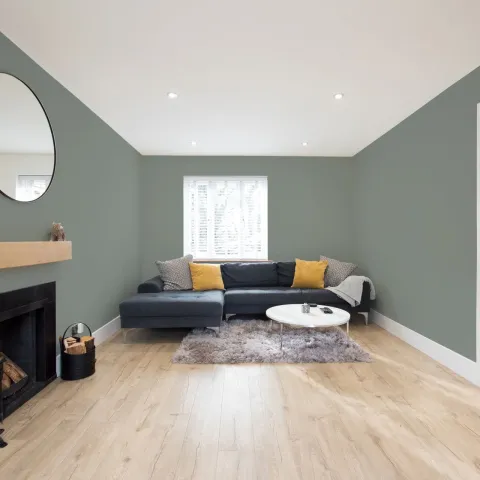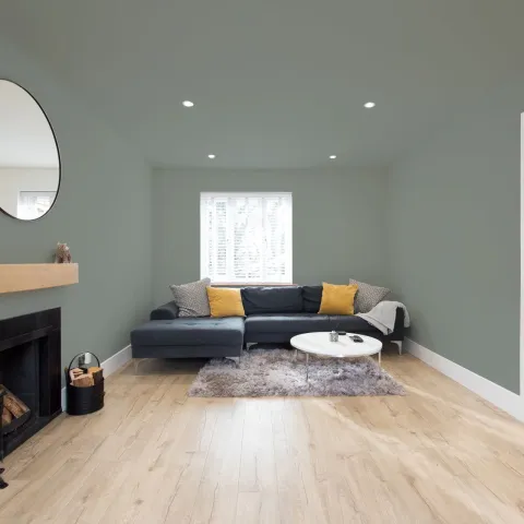 Koko huoneen maalaus seiniä ja kattoa myöten samalla sävyllä tekee huoneesta kodikkaan, kompaktin ja yhtenäisen kokonaisuuden. Tämä maalaustekniikka on täydellinen valinta esimerkiksi ruokailutilaan tai makuuhuoneeseen.
