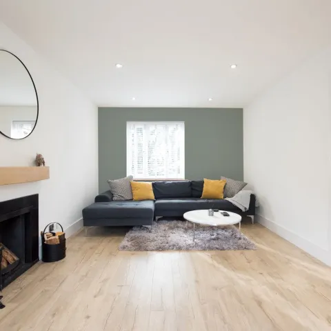 Sijoittamalla tehosteseinä ovesta katsottuna huoneen vasemmalle tai oikealle puolelle luot huoneeseen tasapainoisen tunnelman. Tällä maalaustekniikalla voidaan ohjata katsetta liukumaan huonetta pitkin. Tämä maalaustekniikka on täydellinen valinta esimerkiksi työhuoneeseen, jossa keskittyminen on tärkeässä roolissa. Sisusta huone tasapainoiseksi kokonaisuudeksi jatkamalla tehosteseinän värimaailmaa myös sisustuksessa.