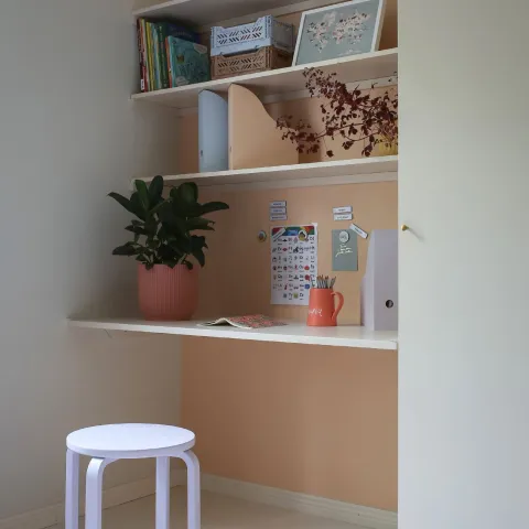 Pienillä yksityiskohdilla voit tuoda väriä lastenhuoneen sisustukseen. Maalaa lastenhuoneen pienet esineet, kuten lehtikotelot ja kynäteline sävytettävällä Liitu-maalilla. Näin saat hauskoja esineitä, joihin voi piirtää ja kirjoittaa liidulla.