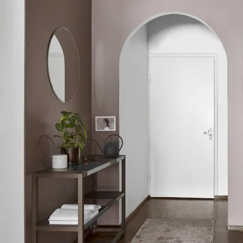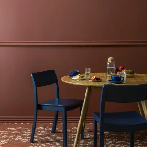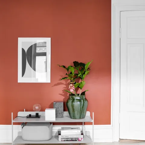 Trendianalyytikko ja suunnittelija Niina Bruun valitsi Vuoden värin N405 Ruukku, olohuoneen tehosteseinän sävyksi.
