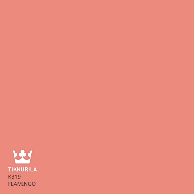 Rantakaupungin haalistunut glamour, makeat cocktailit ja etupihan muoviset flamingot. Persikkainen, mehukas ja riemukas vaaleanpunainen, joka tuntuu upouudelta, vaikka samalla siitä huokuu jotain tuttua. Tikkurilan Vuoden väri 2019.