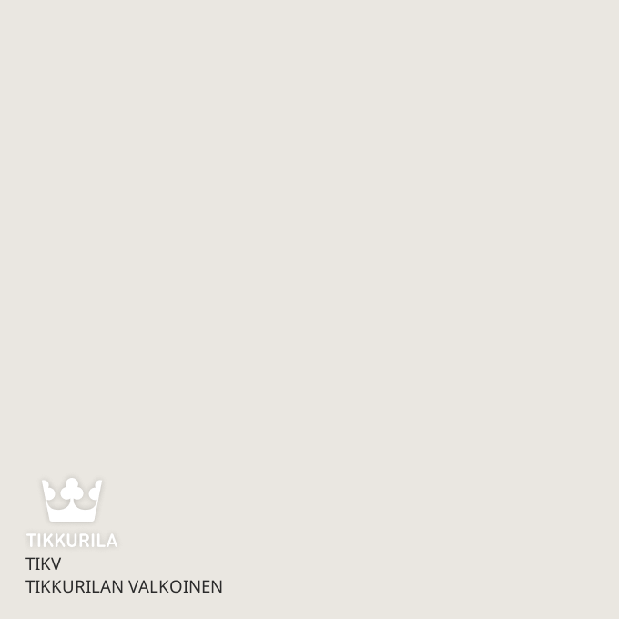 Valkoinen, joka edustaa pohjoismaista tyyliä parhaimmillaan. Murrettu sävy sopii kauniisti yhteen valmiiden, tehdasvalmisteisten valkoisten ikkunanpuitteiden, ovien ja listojen kanssa.