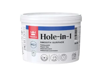Hole-in-1 on hetivalmis erikoiskevyt paikkauskitti, joka sopii betoni-, kevytbetoni-, rappa- ja tasoitepinnoille