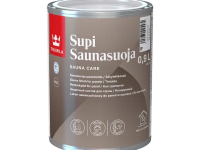Tikkurilan Supi-sarjasta löytyy erinomaisia erikoistuotteita saunoihin: esimerkiksi läpinäkyvä Supi Saunavaha säilyttää puun luonnollisen värin ja Supi Saunasuoja tarjoaa likaa ja vettä hylkivän pinnan saunan seiniin ja kattoihin.