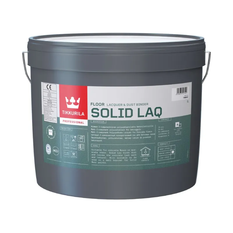 Betonilattioiden pölynsidontaan. Sopii myös himmeäksi pintalakaksi muille Solid-lattiatuotteille. Vain ammattikäyttöön.