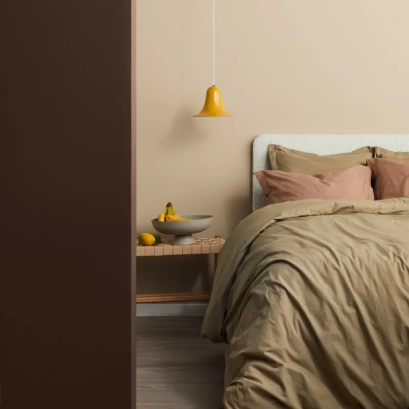 Kivessä on kultaisia pisteitä kuin pisamia. Kultamalmi on lämmin ja keltavivahteinen beige. Kokeile sitä makuuhuoneen seinillä tuomaan pesämäistä tunnelmaa.