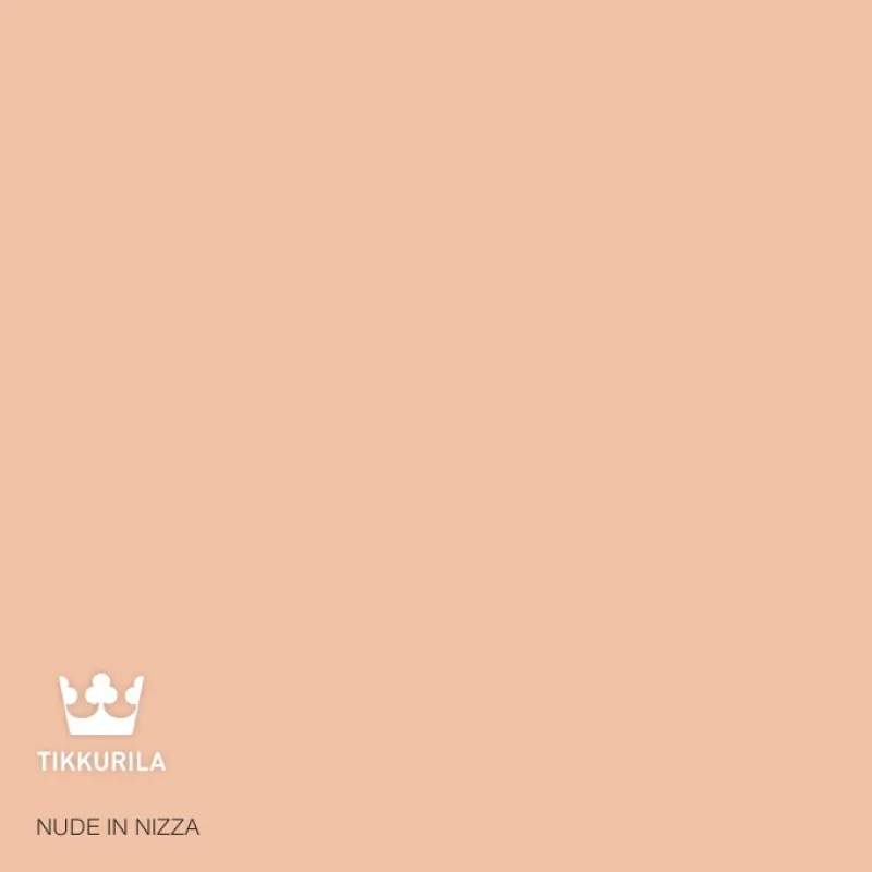 Vuoden 2024 väri on Nude in Nizza, persikan sävyinen beige, joka säteilee lämpöä. Tämä väri juhlistaa rakkauden, ystävällisyyden ja leikkisyyden tunteita. Vuoden värillä maalatussa huoneessa paistaa aina aurinko.