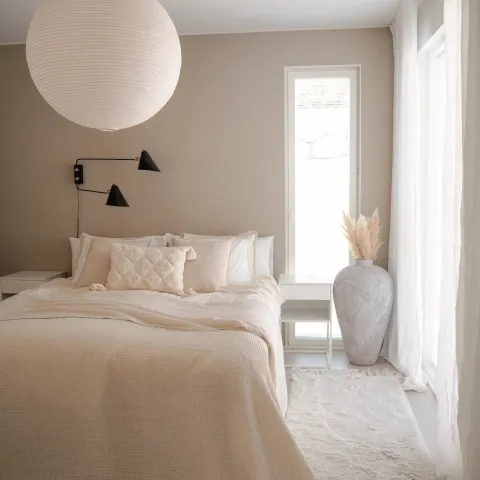 Kuvittele kalliot, jotka kohtaavat rantahiekan ja anna luonnon rauhan maalata mielesi. @cityporstua maalasi makuuhuoneensa pehmeällä vaaleanruskealla K484 Granuliitilla.