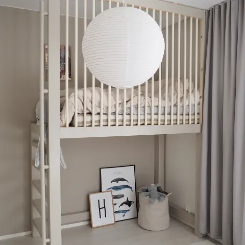 @saraeilola maalasi lastenhuoneeseen uuden ilmeen ja toteutti lapsensa unelman parvisängystä. Parvisänky muistuttaa pienestä majasta, jossa lapsella on turvallisen tuntuista nukkua. Upouusi parvisänky maalattiin samalla sävyllä kuin seinä: rauhoittavalla beigellä V484 Ajopuulla.