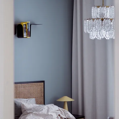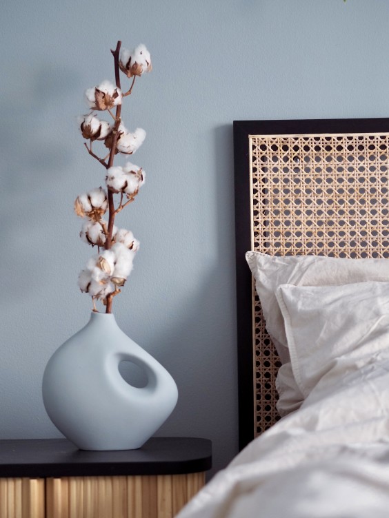 Vaalea neutraalin sävyinen makuuhuone tuntui tylsältä ja ankealta ja tila tuntui kaipaavan lisää väriä. Päätimmekin maalata ei vain yhtä seinää, vaan kaikki seinät uudella sävyllä. Väriksi valikoitui upea harmahtava vaaleansininen: Fog in France, joka on uudesta Color Now 2024 -värikokoelmasta. Sininen liitetään usein rauhaan ja levollisuuteen, ja siksi se onkin täydellinen valinta makuuhuoneen seinille.
