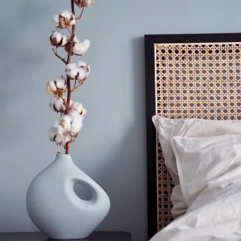 Maalasimme neutraalin vaalean makuuhuoneen päivässä rauhoittavaksi vaaleansiniseksi. Katso miten muodonmuutos toteutettiin ja inspiroidu kodin pikkurempoista, jotka voit toteuttaa itse.