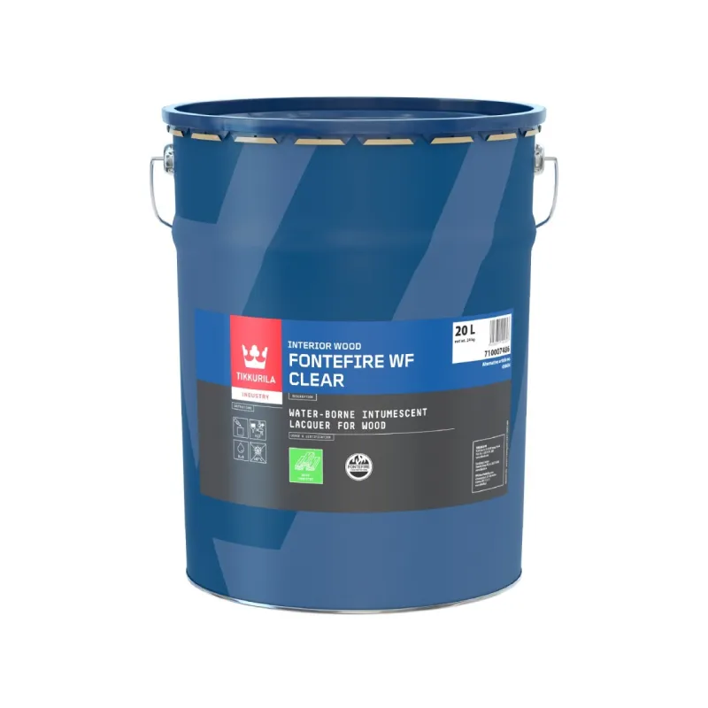 Fontefire WF Clear on M1-luokiteltu palosuojalakka sisäkäyttöön. Läpikuultavan valkoinen värisävy myötäilee puunsyitä. Korostaa vaaleiden puulajien kauneutta.