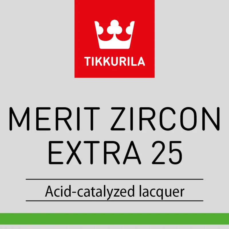 Merit Zircon Extra 25 on yleislakka, jota käytetään sekä pohja- että pintalakkaukseen. Helppo hioa, ei sisällä aromaattisia liuotteita. Voidaan käyttää kalusteiden, ovien ja muiden puupintojen lakkaukseen.