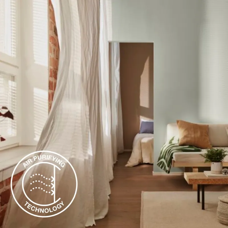 Täyshimmeä sisustusmaali innovatiivisella ilmaa puhdistavalla teknologialla, joka vähentää haitallisen formaldehydin tasoa sisätiloissa. Tämä ominaisuus on todennettu akkreditoidussa riippumattomassa tutkimuslaitoksessa, käyttäen ISO 16000:23 testimenetelmiä. Erinomainen peittokyky takaa kauniin, helposti puhdistettavan pinnan.