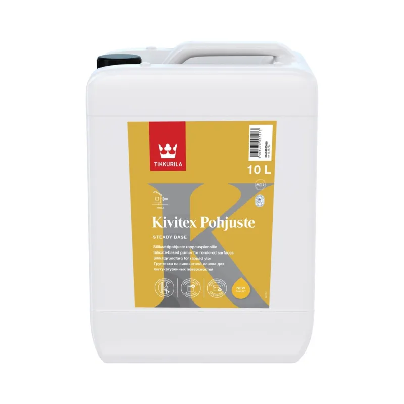 Kivitex Pohjuste vahvistaa kiviainespintoja, erinomainen pohjuste betoni-, kalkki-, kalkkisementti-, sementtilaasti- ja kalkkihiekkatiilipintojen pohjustamiseen. Kivitex Pohjuste parantaa maalin tarttuvuutta sitomalla alustaa. Käytetään huokoisten, vettä imevien kiviainespintojen pohjustukseen ennen maalausta silikaattimaalilla.