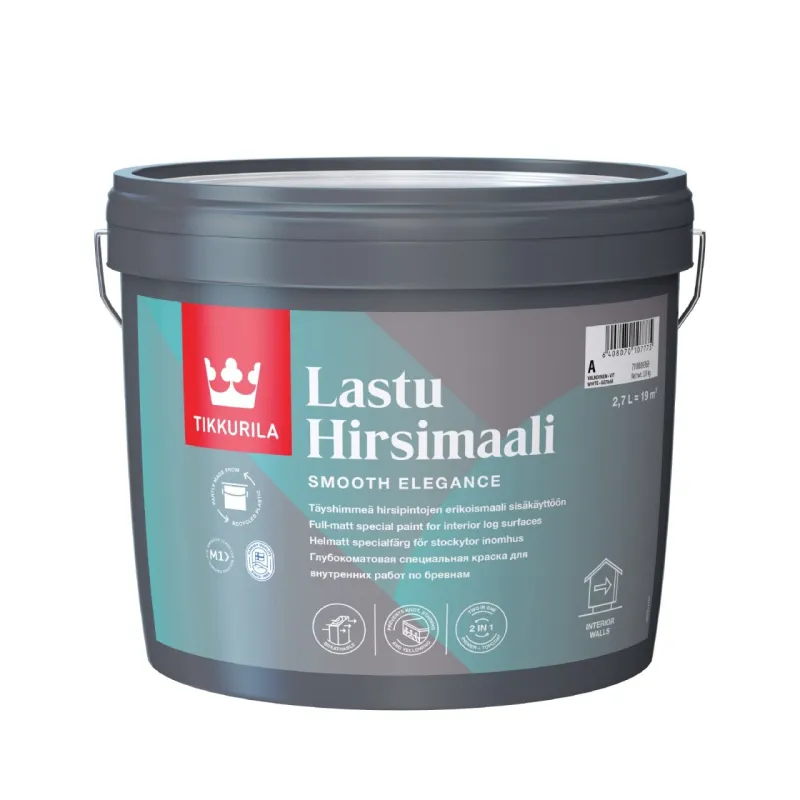 Peittävä erikoistuote sisähirsipinnoille, läpäisee hyvin vesihöyryä. Lastu Hirsimaali on sisähirsipinnoille kehitetty hengittävä maali.