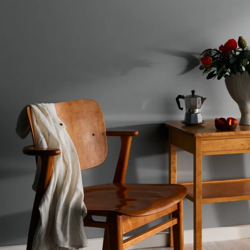 Tummanharmaa basalttikivi hallitsee kauniin karua vulkaanista maisemaa. Maanläheinen harmaa sopii täydellisesti yhteen vaaleiden puun sävyjen kanssa.