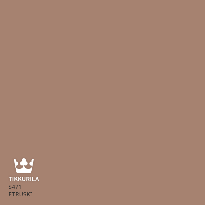Muinaisten kansojen terrakotta-esineet puhuvat samaa kieltä tämän punertavavivahteisen ruskean kanssa. Etruski on hyvä taustaväri, jonka voi yhdistää moniin sisustustyyleihin ja muihin väreihin.