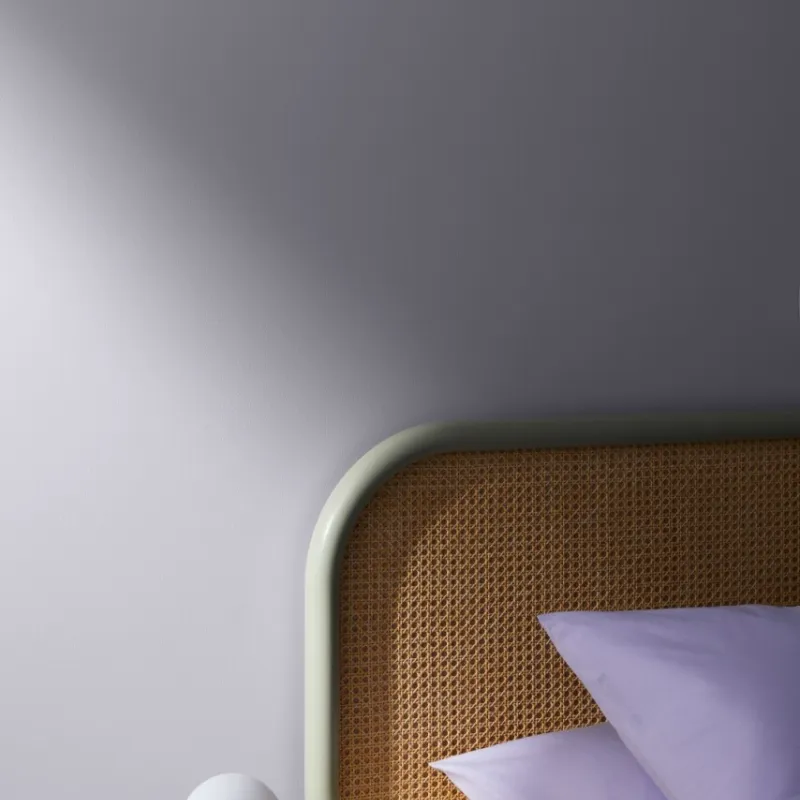 Kaino ja hentoinen, kuin metsäorvokin pehmeä terälehti. Viileä ja utuinen liila pääsee oikeuksiinsa isoilla seinäpinnoilla.