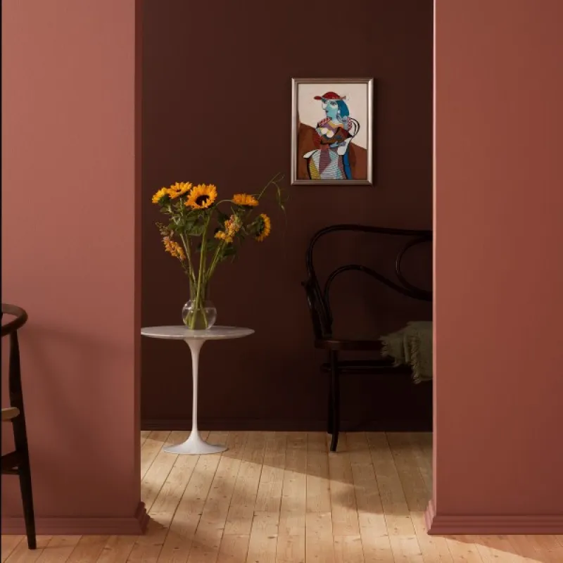 Tämä utuinen roosa säteilee lämpöä ja myötätuntoa – sitä, miten meidän elämämme kietoutuvat yhteen. Ruusun hetki on Tikkurilan Vuoden väri 2023.